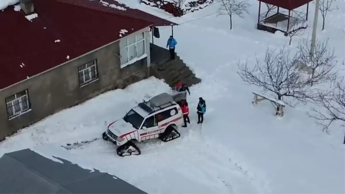 Göğüs ağrısı çeken kadına, kapalı yolda paletli kar ambulansı ile ulaşım sağlandı
