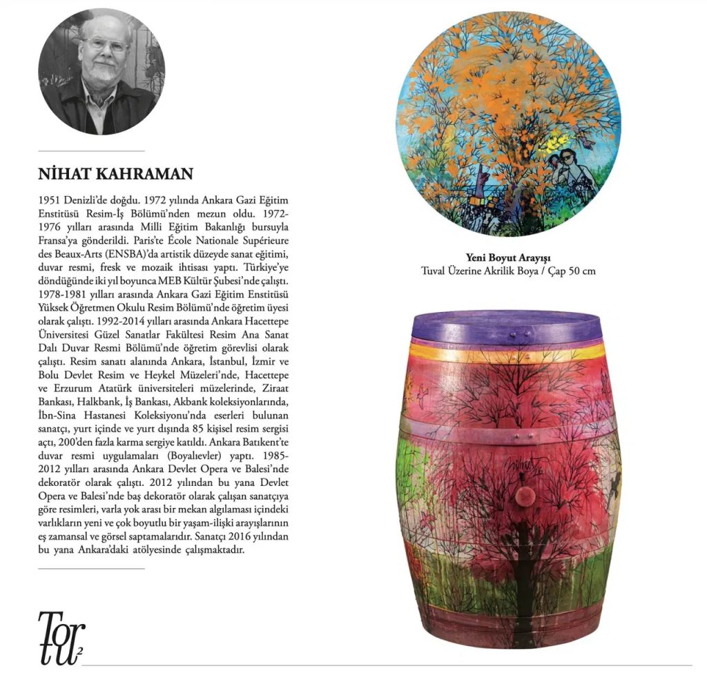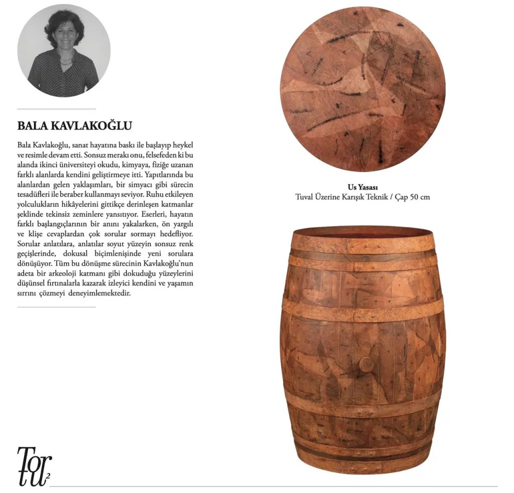 Sergide, bir zamanlar olgunlaşmanın ve bekleyişin simgesi olan meşe fıçılar, asli görevlerini sanatçıların hayal gücüne devrederek yeni birer kimlik kazanıyor. Fıçılara eşlik eden dairesel tuvaller ise bu dönüşümün duvardaki yankısı olarak serginin görsel bütünlüğünü tamamlıyor.